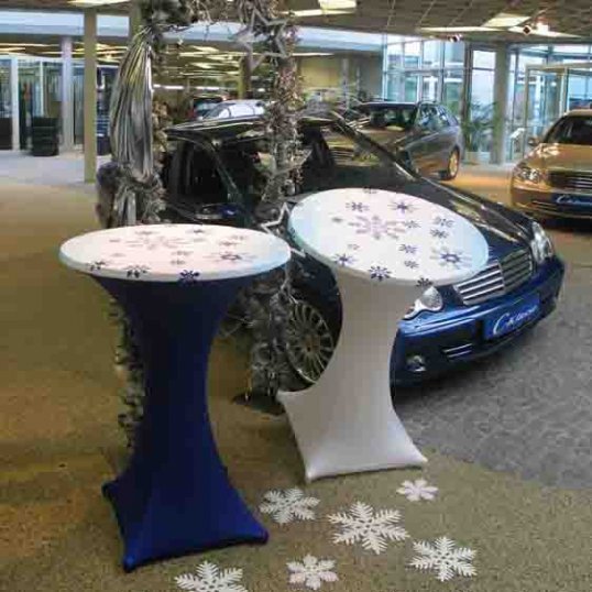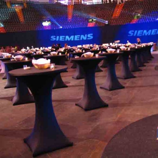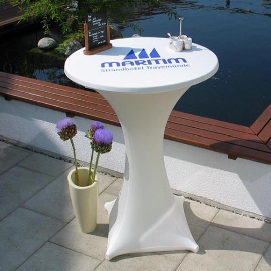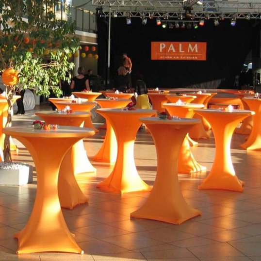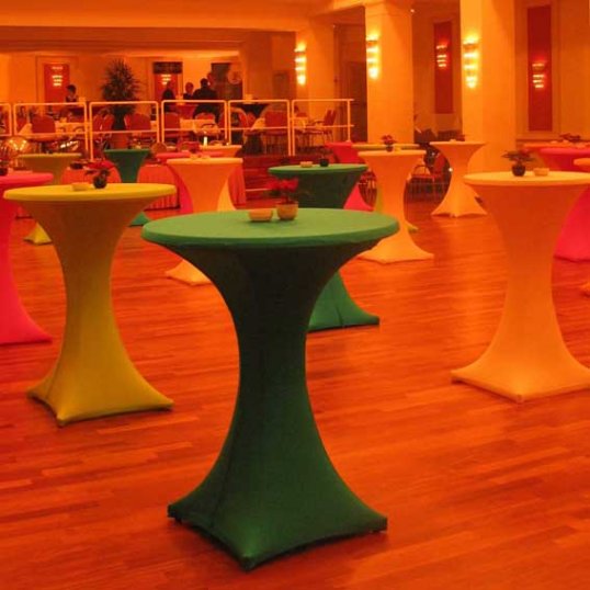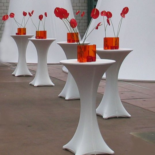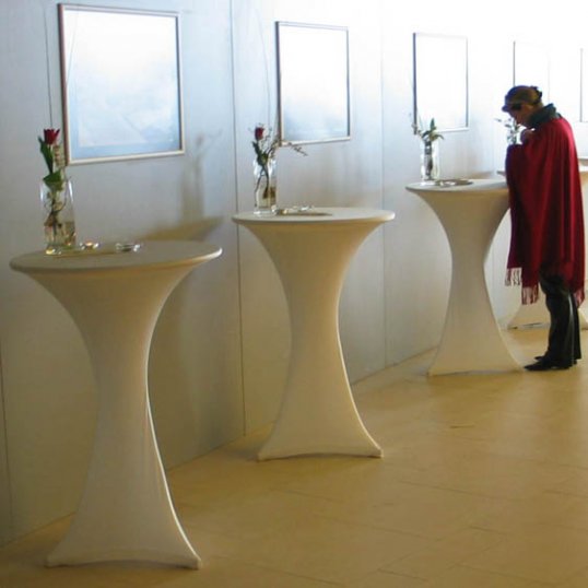 Der Stehtischüberzug Galactica, ausgezeichnet mit dem Gastro Vision-Preis 2005, ist die neue Art einen Stehtisch in Szene zu setzen! Die tailliert geschnittene Stretch-Husse stellt zu herkömmlicher Lackfolie und altbekannter Baumwoll-Tischwäsche eine neue Alternative dar.