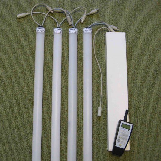Ein Beleuchtungsset besteht aus vier stabförmigen Röhren und einem Funkakku. Zusätzlich eine Fernbedienung, welche unzählig vorprogrammierte Effekte und Farbspiele beinhaltet, zur Programmierung von einzelnen Set oder Gruppen.
